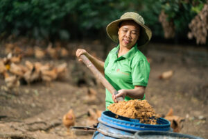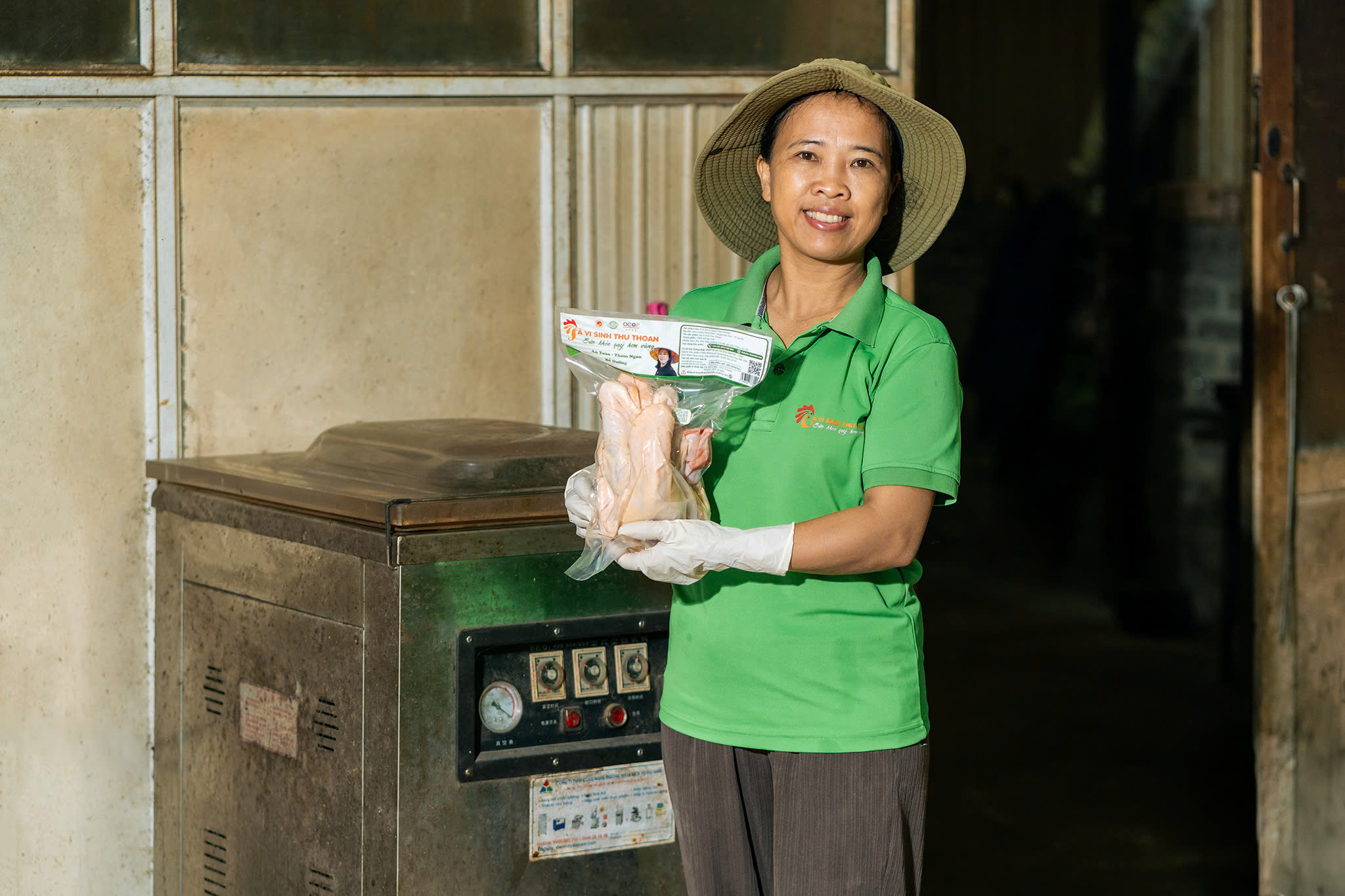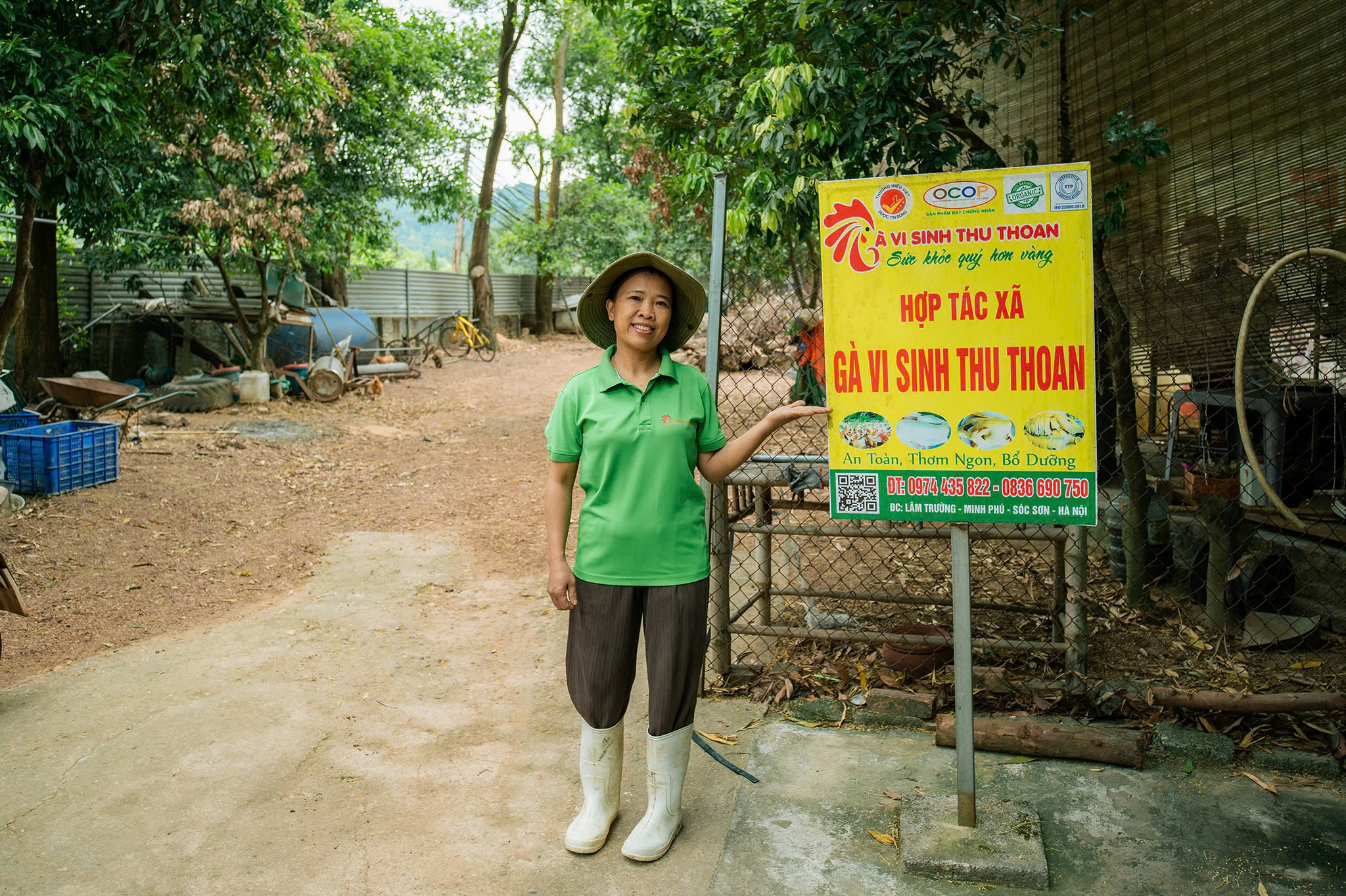 Để minh bạch sản phẩm của mình chị mang mẫu nước, mẫu thức ăn và mẫu thịt gà đi kiểm tra kết quả cho thấy thịt gà của chị không nhiễm khuẩn salmonella và E. coli, đảm bảo an toàn. Hiện tại, trang trại của chị Nguyễn Thu Thoan có khoảng 3.000 con gà, 40 con lợn chị đang triển khai nuôi thử nghiệm với tổng trị giá 600 triệu đồng. Gà tại trang trại của chị là giống gà ri, và lợn là giống bản địa có bố là lợn rừng được thuần chủng. Với chị: “Người sản xuất quyết định sản phẩm sạch hay không sạch, an toàn hay không an toàn”. Mong muốn lớn nhất của chị Nguyễn Thu Thoan là được đầu tư vốn để mở rộng sản xuất chăn nuôi.